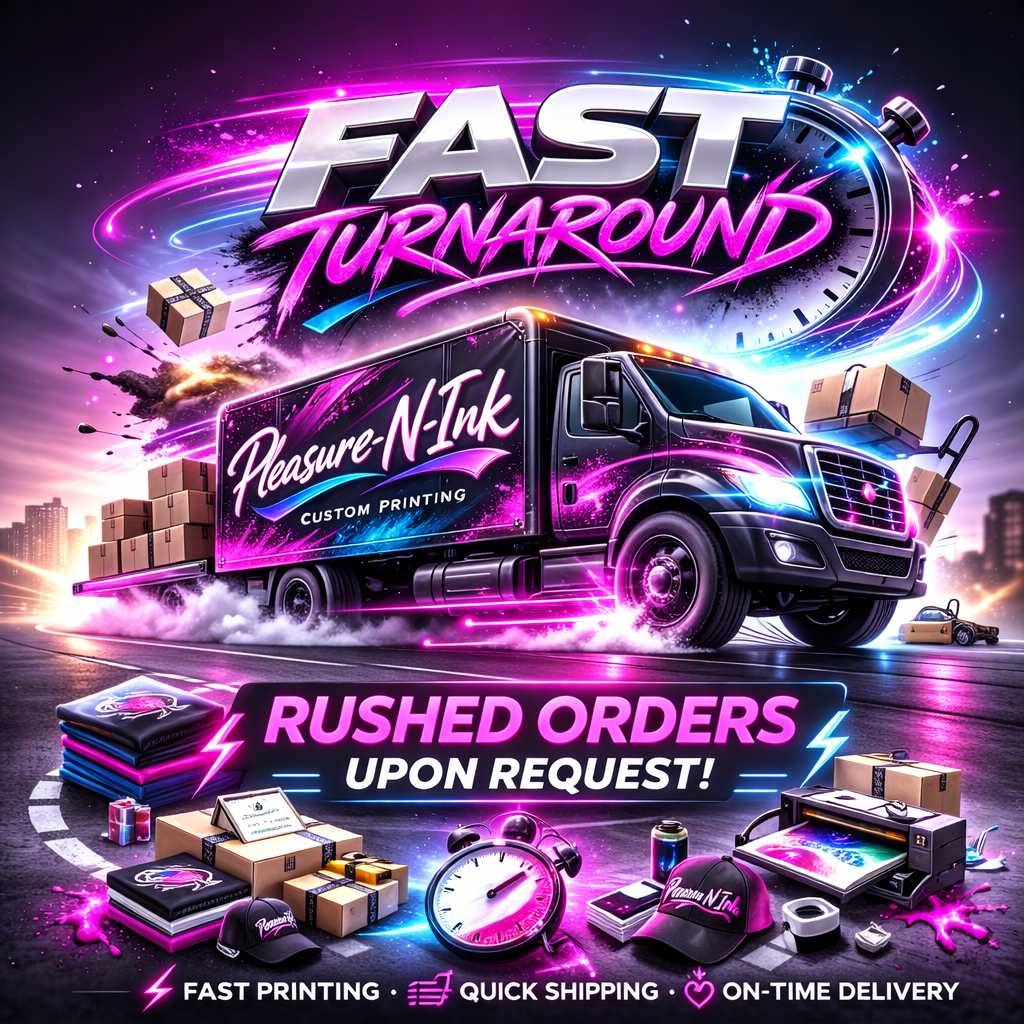 At Pleasure-N-Ink, we offer professional custom printing services for your unique designs. Whether you need DTF transfers, gang sheets, or custom apparel prints, we've got you covered with high-quality results.