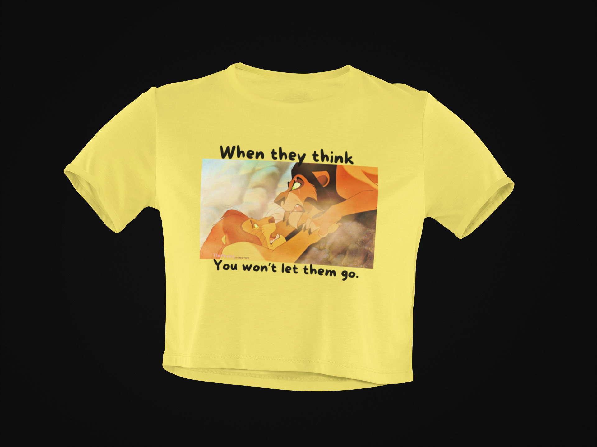 Get ready to take the throne in fashion with our “When They Think You Won't Let Them Crop Top,” a fierce tribute to that unforgettable moment from *The Lion King* when Scar hatches his devious plan and sends Mufasa tumbling!